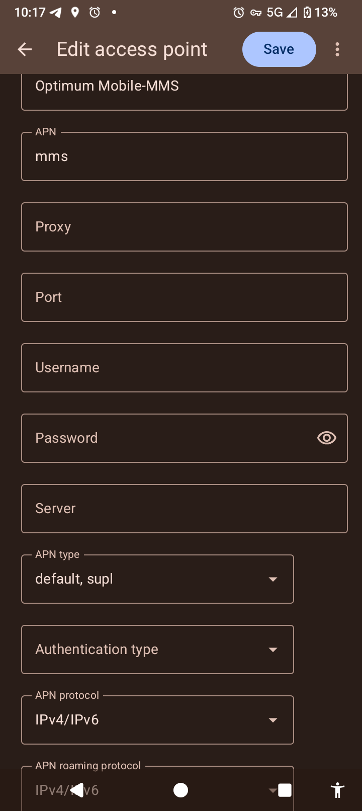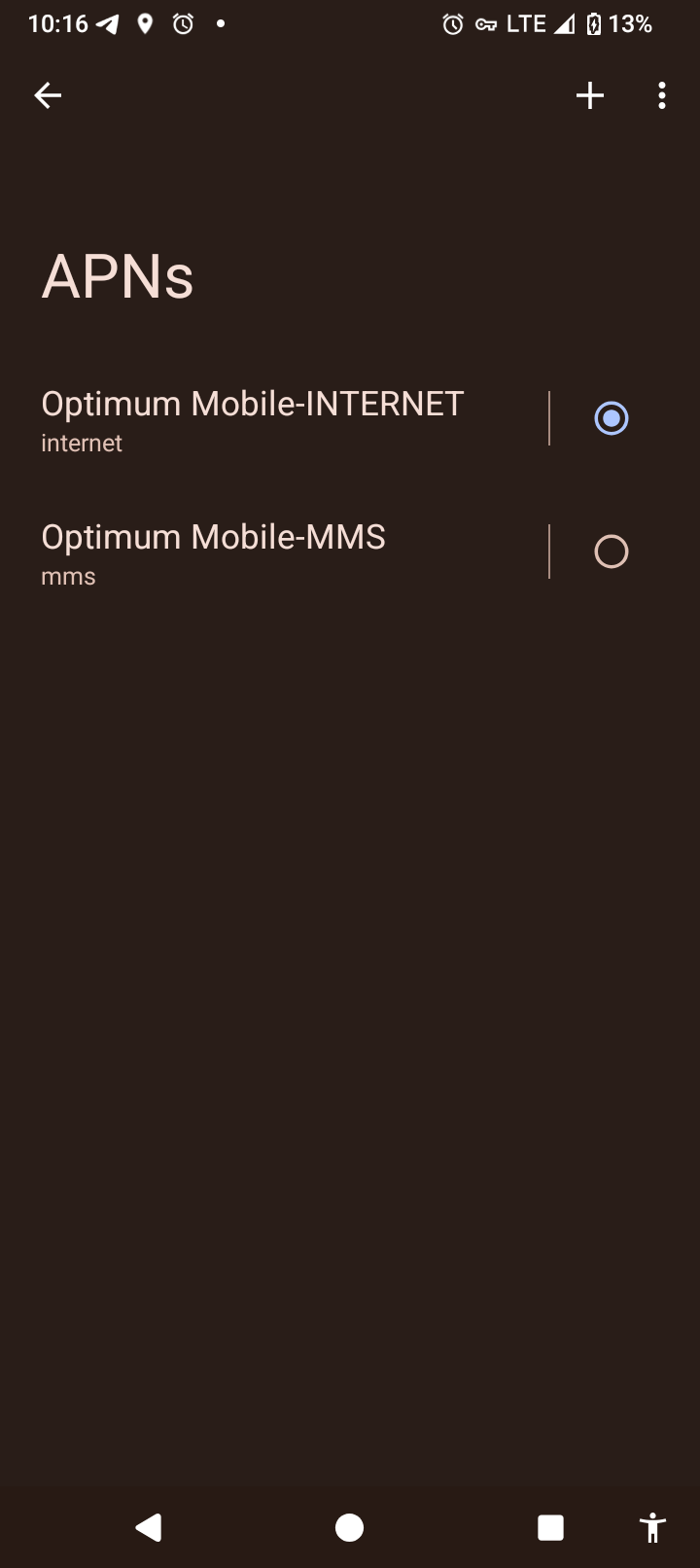 I tried for a few hours today again setting the APN to all kinds of combinations. (methodical guessing). I’m willing to change carriers at this point. I would not recommend Optimum for phone service.