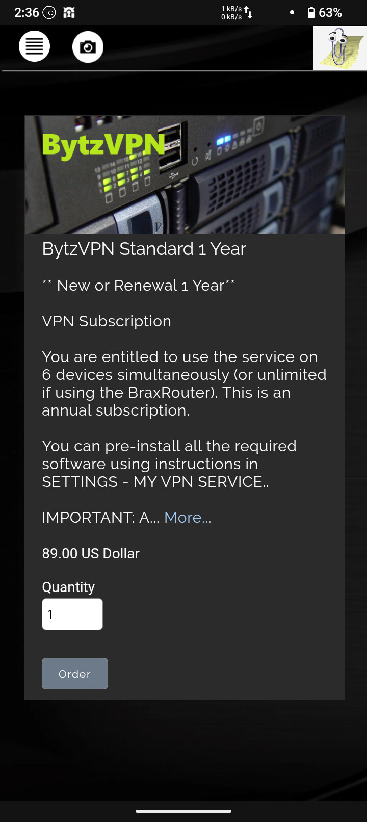 There is no link to buy a bytzvpn on brax.me.