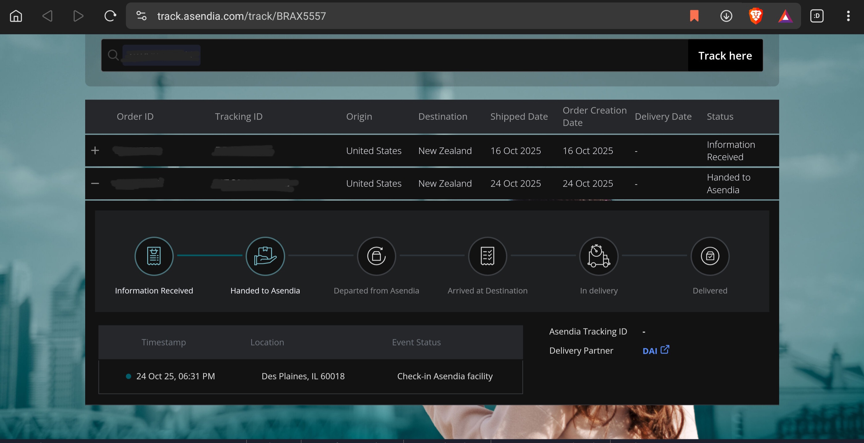 My asendia tracking was stuck at the first stage for a couple of weeks. As if it hadnt even been collected or entered into the system. It moved eventually. Very frustrating.