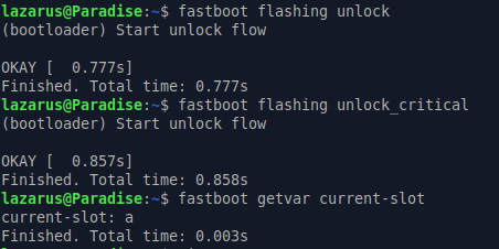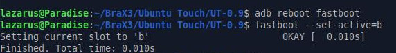 Unlocked bootloader with Lunar OS installed gives identical info: installed on slot A and setting slot to B fails. We need a new recovery to that I think! ![]()