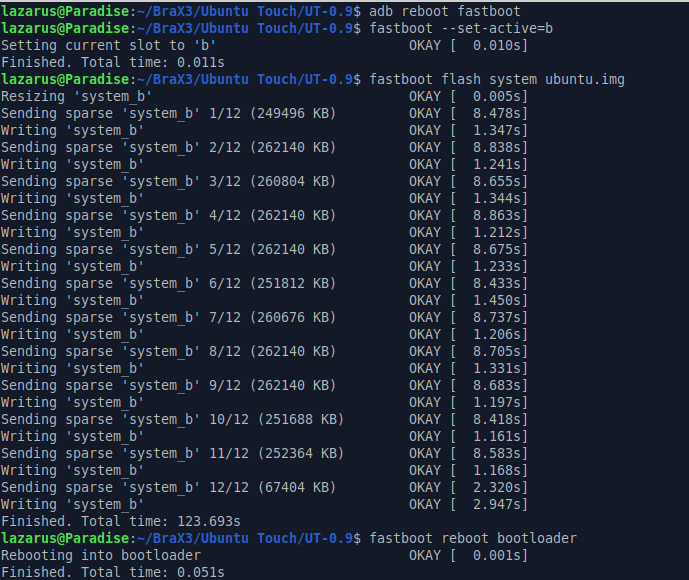I got my R&D phone back into iode’ and it is installed in slot A. I have the bootloader unlocked and then re-enabled USB debugging. Then I authorized the device but fastboot still won’t let us switch over to slot B to install Lunar OS there and then install Ubuntu Touch. This is the error I got: