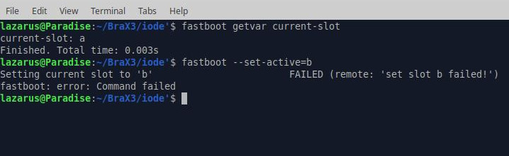 Now that I have my UT BraX3 back to iode’, I wanted to try this to see if it lets u change slots using fastboot and it seems to. I’m not real sure how to put an OS into the additional slot to see if it will change there but we can inquire about what is there. I took a screenshot…I think u first have to unlock the bootloader: