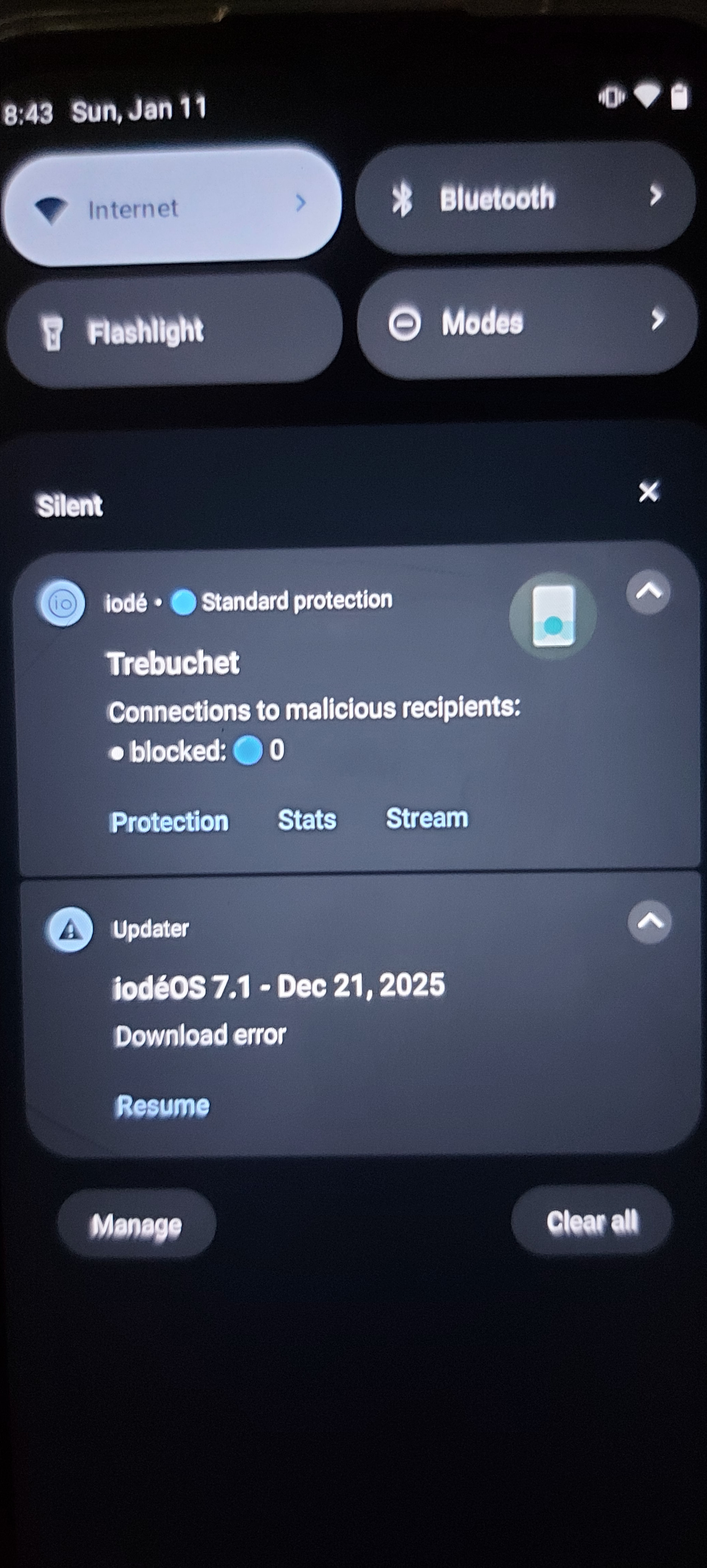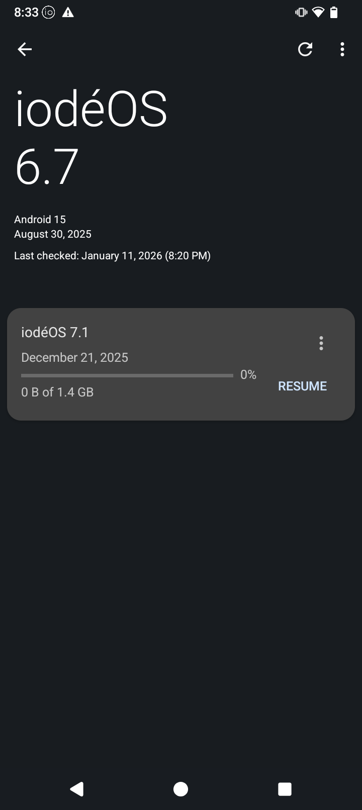 Hello Brax3 fellow users. I have not updated my phone for months after I received it. Today I realized about this and wanted to catch up. Even though I followed those directions in the December 7, 2025 post in the News app: “iodeOS version 7 upgrade important information” I could not install the update. After hitting the link in that post and allowing the iode Browser to Open Links, I was able to download the Updater-v6-to-v7.apk But after hitting that Updater to install, I got an instant mesage in my screen: “The download failed. Please check your internet connection and try again later.” Also received a warning sign in my notifications saying: “Download error.” My WiFi is working great. Anyone could help me fix this issue? All insights are welcome!