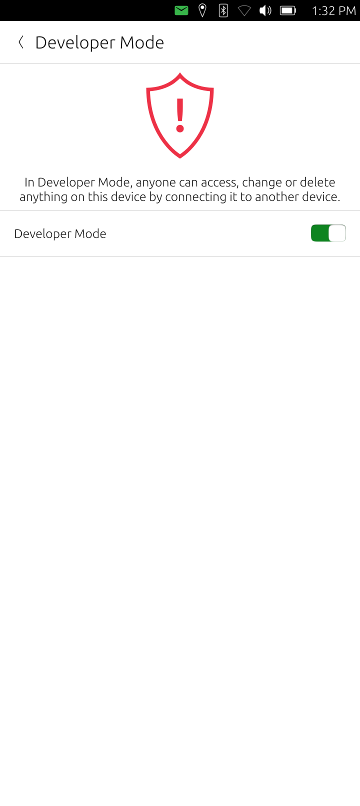 Once booted, the next thing I did was enable the developer mode on the phone (I think this is what Android calls USB debugging):