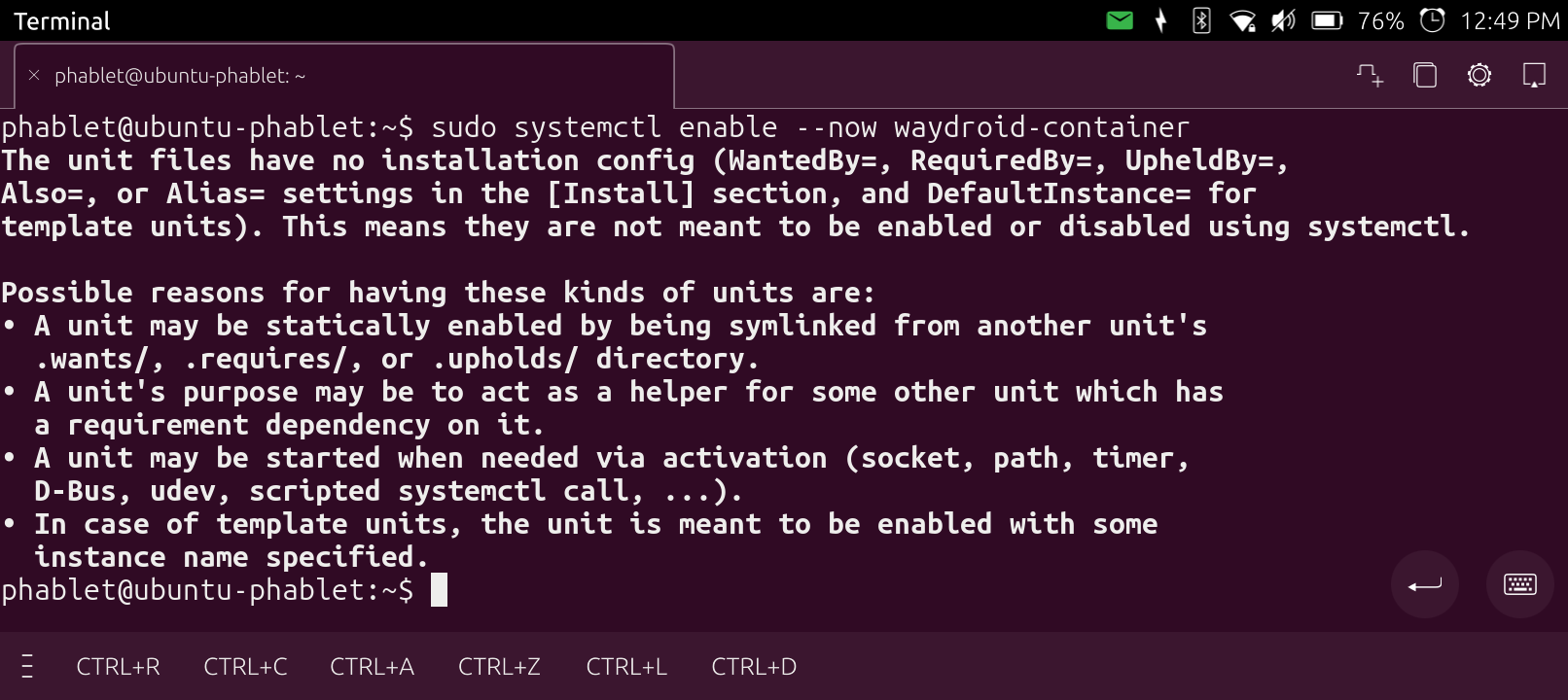 Well, i got waydroid installed in libertine with no errors. I restarted the phone and no launcher appears. I can access it from the terminal but I’m not sure how to install an Android app. Here’s some screenshots: