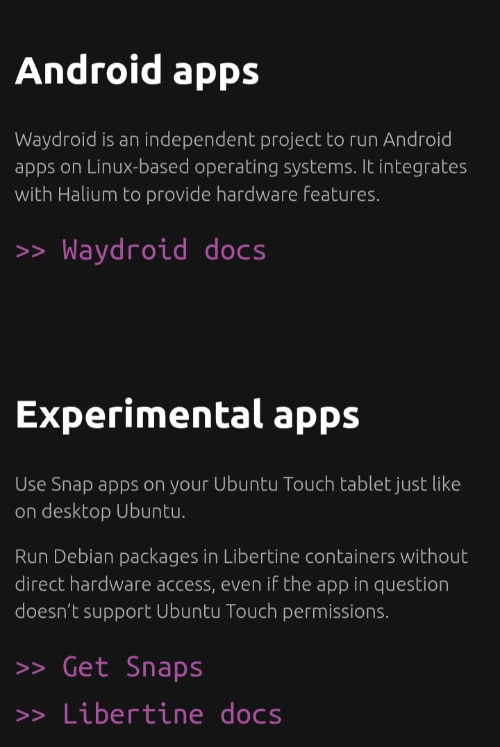 There are other ways to get more common apps on the UT. I got an experimental version of Brave Browser on it with snaps but the font is real small and it seems like I need to plug a keyboard in to make it go to a site. This is from the Ubuntu Touch site:
