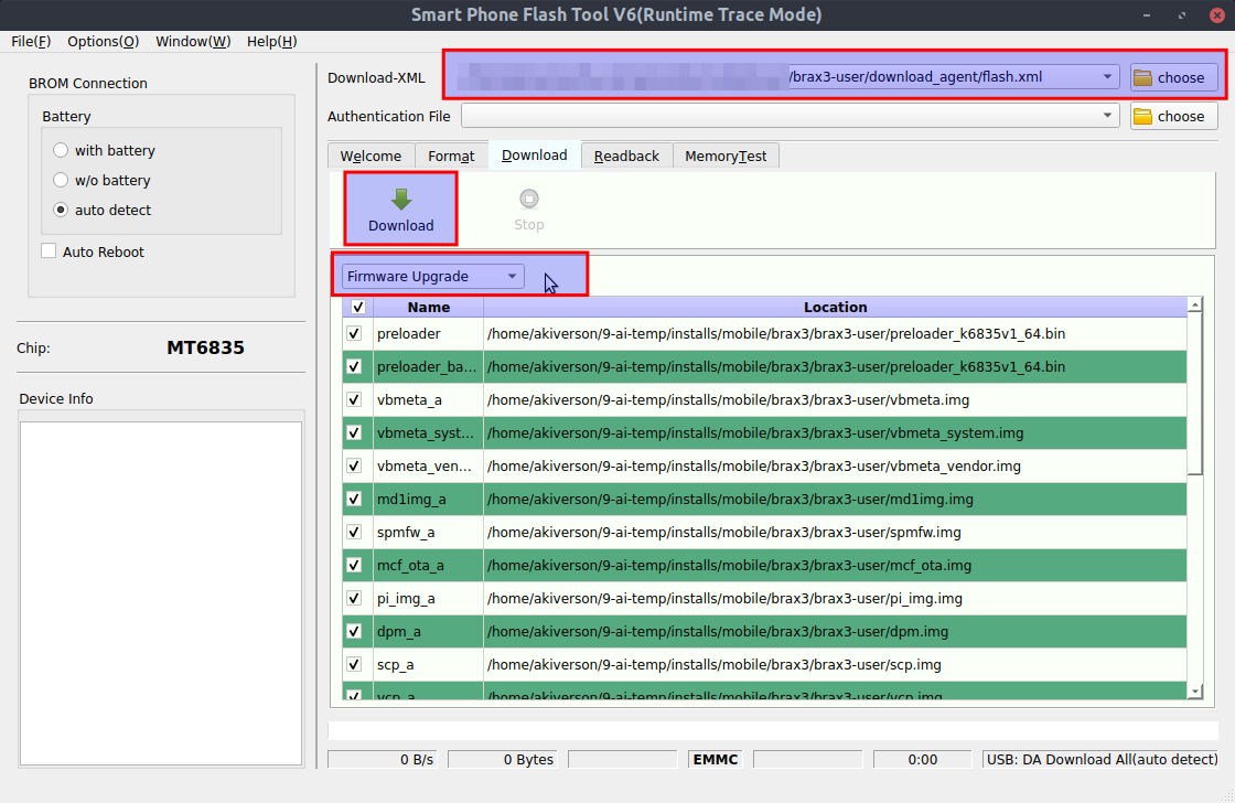 Download “full” SP Flash compatible image and decompress (by default the folder created is brax3-user)