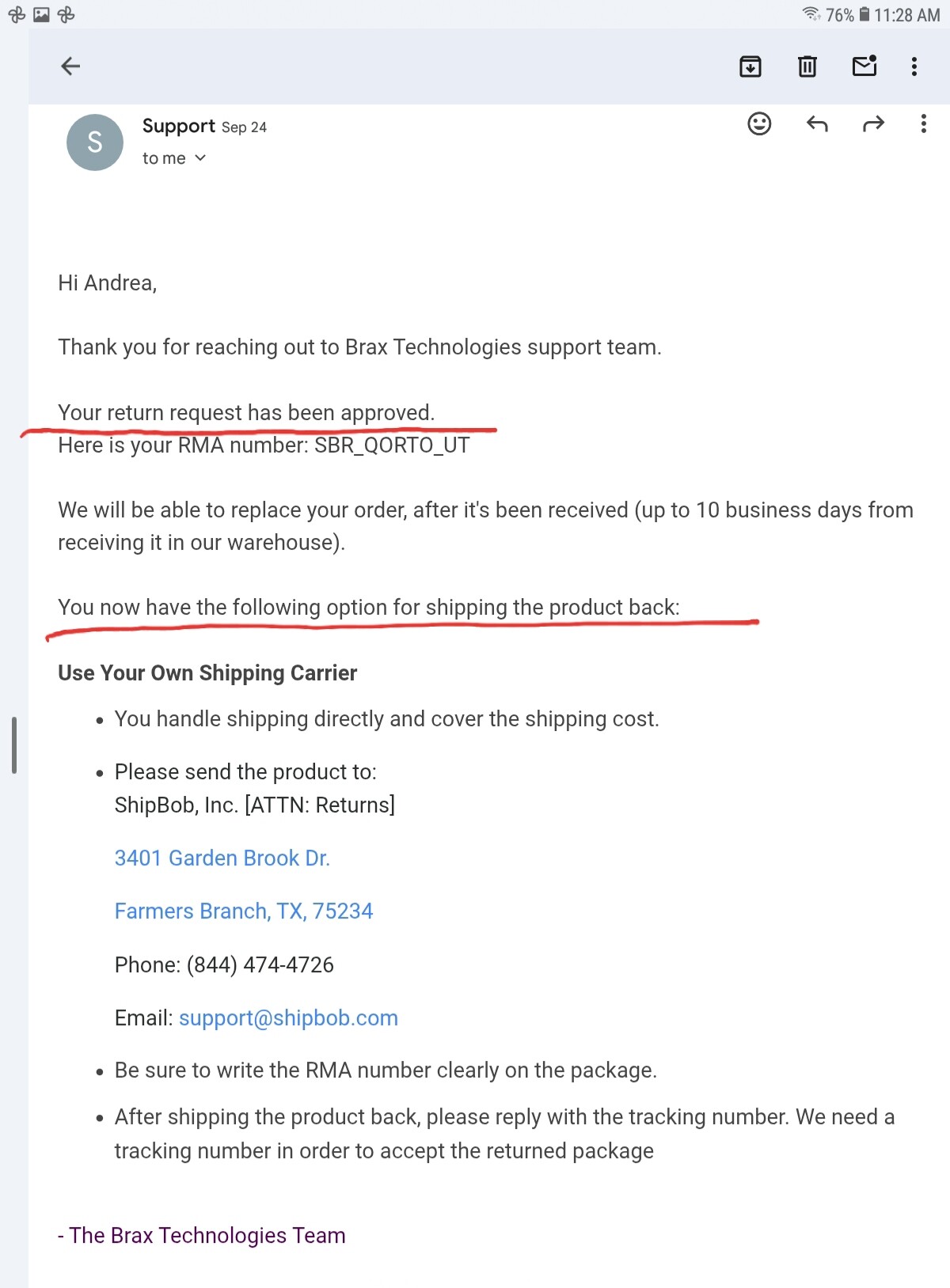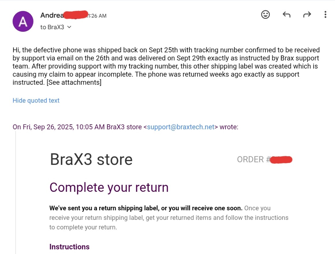 Helen, I saw your msg. You need to email [email protected] and in the subject type in your order your order number. In the body of your email state your complaint. It worked for me; they responded and gave instructions. Give it a go. However, I have still not received my Brax3. Ordered my phone in October 2024!!! Yes that long ago. I was a pre-order investor/customer. Over the summer I received a useless Brax3. I contacted them they way I mentioned above. They sent me a return label in August I emediatelly sent the phone back and to this very day, I still have no device. That stinks. They have my money and I have nothing. Hopefully after their done skipping over me, forgetting me and all their excuses I may finally receive the device. So that’s my personal experience… Good luck!