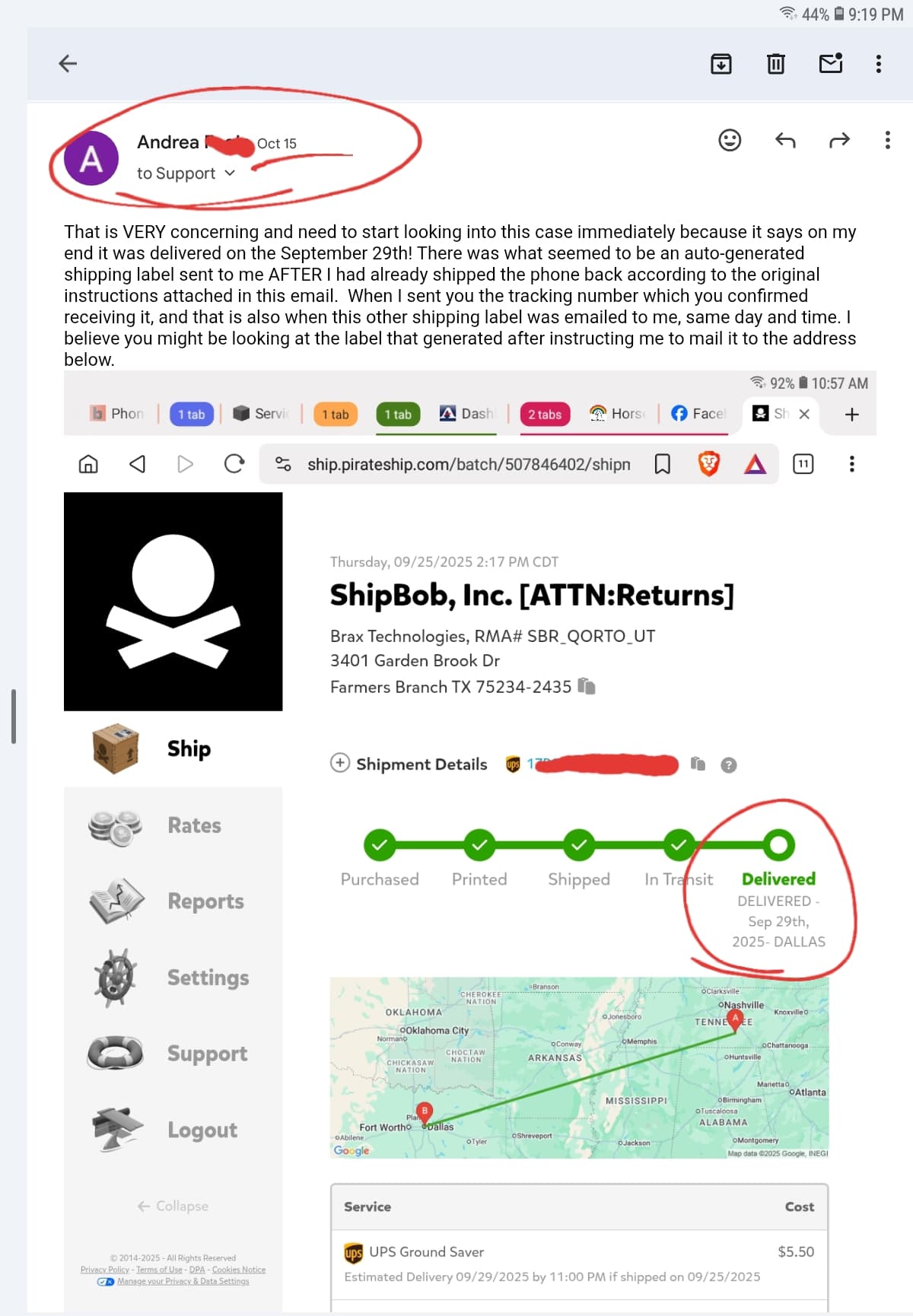 I just replied to the shipping label email (which was seperate) with the above screenshots. I have emailed them already with no response, so hopefully responding to that email will help support figure their mistakes out